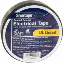 Shurtape EV 057B Black Electrical Tape, EV 57 3/4" X 66′, 7 mil, Black – Pkg Qty 10