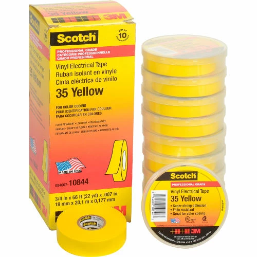 3M Scotch® Vinyl Electrical Color Coding Tape 35-Yellow, 3/4" X 66′ – Pkg Qty 10