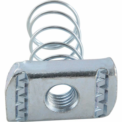 The 1-5/8″ Strut Channel Nuts help with channel fitting and fastening operations with the Unistrut® framing system. The nuts have rounded ends that are easy to install and allow for easy insertion into and rotation within the strut itself. Serrated grooved edges will help keep it tight against the top of the strut, preventing any unwanted movement or rotation. Our struts are made with an electro-galvanized zinc finish for lasting durability. Units are punch-press made and conform to ASTM specifications. Nuts are case hardened with unified coarse screw heads. Type is Channel Spring Nut. Size is 1-5/8″. *Note: This product is in stock and ships in 2 days. Product is sold in smaller quantities than competitors and priced competitively. All of our struts and accessories conform to the ASTM standard.