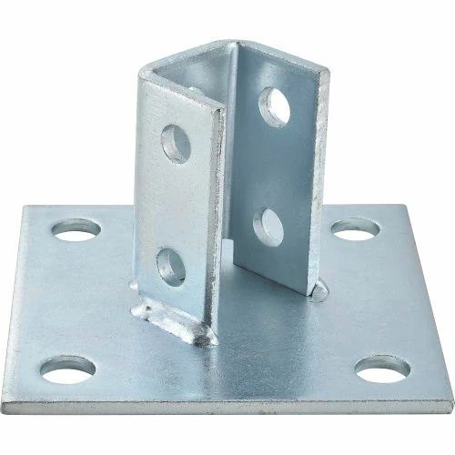 1-5/8″ Post Bases work with the Unistrut® framing system. The post bases are used to create a stronger base attachment for mounting fiberglass channels, handrails, and instrument stands in corrosive environments. Our bases have an electroplated zinc finish for lasting durability. Units are punch-press made and conform to ASTM specifications. Type is Post Base. Hole quantity is 10. *Note: This product is in stock and ships in 2 days. Product is sold in smaller quantities than competitors and priced competitively. All of our struts and accessories conform to the ASTM standard.