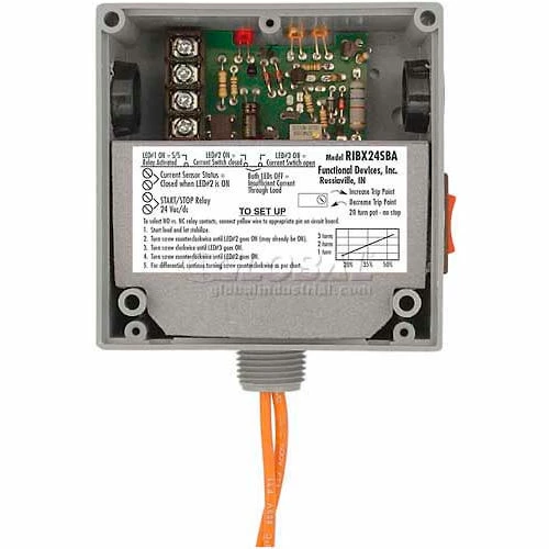 RIB® Enclosed Internal AC Sensor W/Relay RIBX24SBA, Adjustable, 20A, SPST, 24VAC/DC, Override