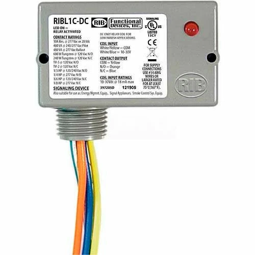 RIB® Enclosed Relays RIBL1C-DC, 10A, SPDT, 10-30VDC, Low-Inrush